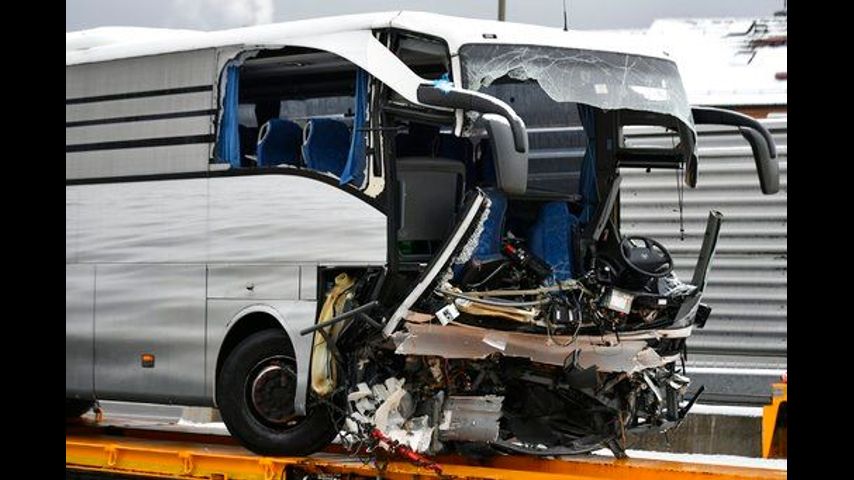 Zurich canton (state) police say the bus went into a skid on the snowy road and crashed into a wall.