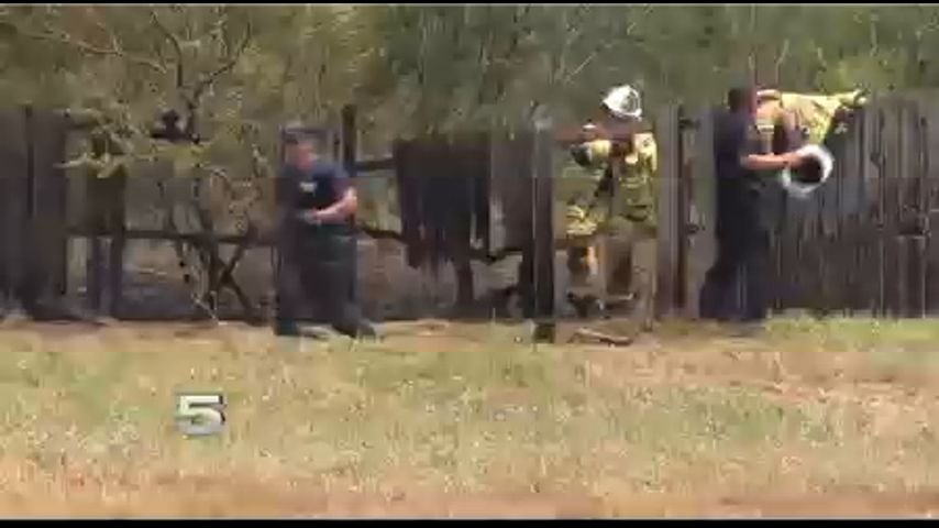 The flames also spread to a grass fire on a neighboring property before it was completely put out.