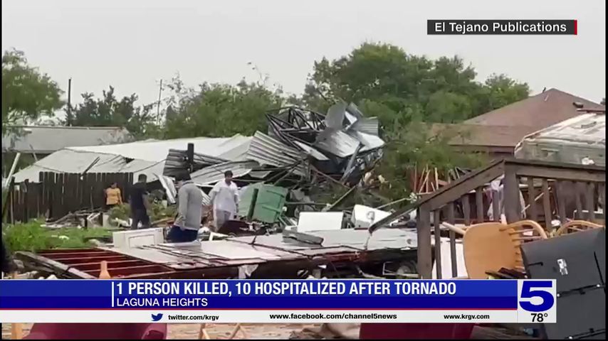 The man killed in Laguna Heights was identified as Robert Flores. Cameron County Emergency Management Coordinator Tom Hushen reported tornado damage in the area, which included multiple destroyed structures and injuries confirmed.
