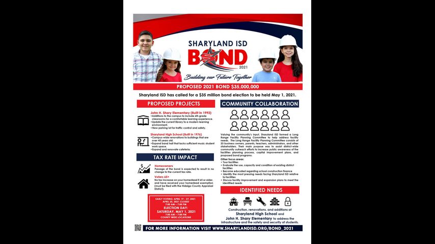 The Sharyland school district called for a bond election to be held May 1, 2021.