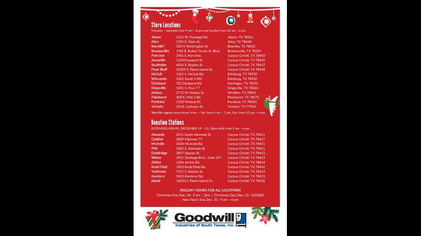 ALAMO – Giving extravagant gifts during the holidays is nothing new — consider the “five golden rings” and “partridge in a pear tree” from the well-known Christmas carol. This holiday season, Goodwill is asking South Texans to give more meaningful gifts, such as second chances and confidence by donating things they no longer want or need to Goodwill.
