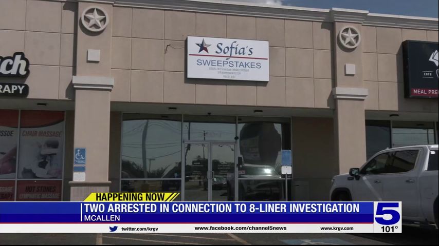 Two people were arrested Thursday in connection with an ongoing 8-liner investigation into a business, according to the McAllen Police Department.