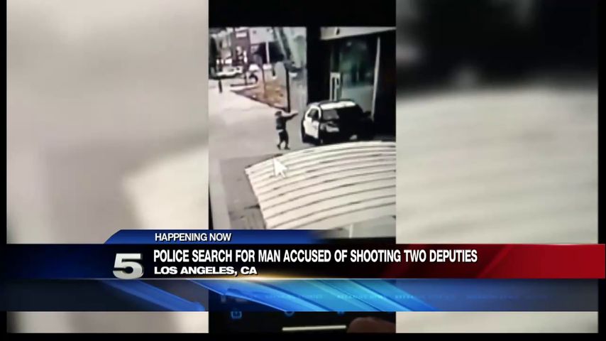 COMPTON, Calif. (AP) - Authorities searched Sunday for a gunman who shot and wounded two Los Angeles County sheriff's deputies who were sitting in their squad car - an apparent ambush that drew an angry response from the president and sparked an anti-police protest outside the hospital where the deputies were being treated.