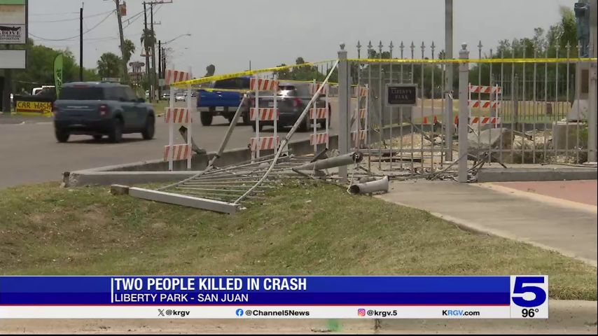 Two people died after a vehicle crashed into the enclosure of Liberty Park, according to the San Juan Police Department.