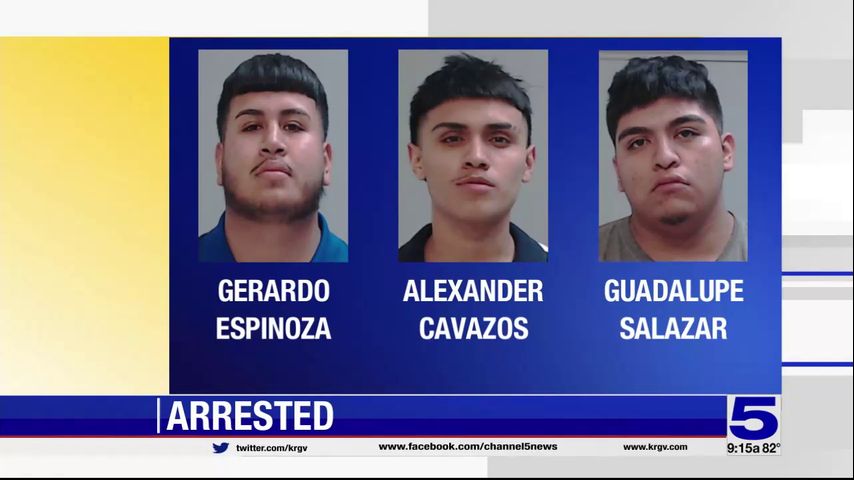 Gerardo Espinoza and Guadalupe Salazar, both from Mission, and Alexander Cavazos were arrested by the city’s police department.