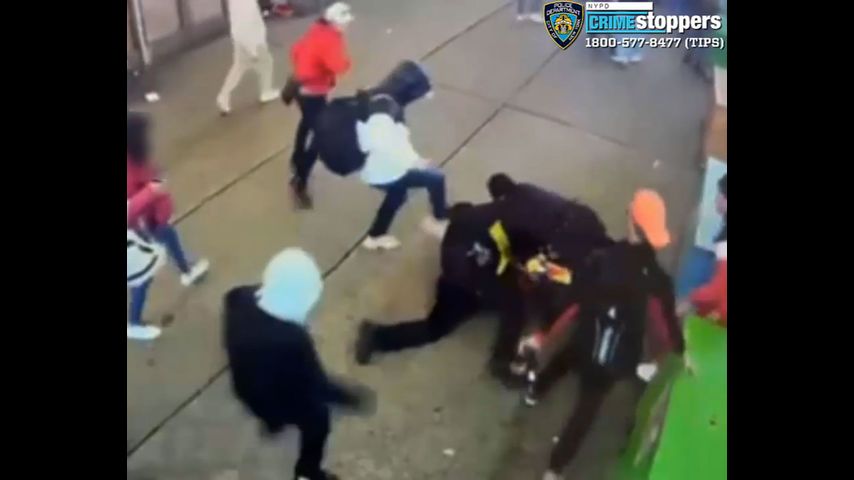 When the officers tried to take a person into custody, “multiple unidentified individuals repeatedly kicked and punched the officers in the head and body” and later fled on foot, police said. The officers had minor injuries and were treated on the scene, police said.