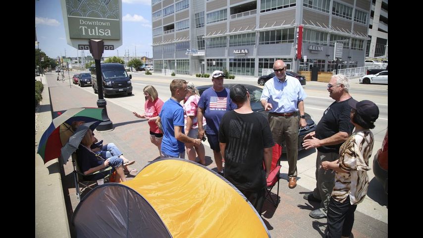 Tulsa has seen cases of COVID-19 spike in the past week, and the local health department director asked that the rally be postponed. But Republican Gov. Kevin Stitt said it would be safe. The Oklahoma Supreme Court on Friday denied a request that everyone attending the indoor rally wear a mask, and few in the crowd outside Saturday were wearing them.