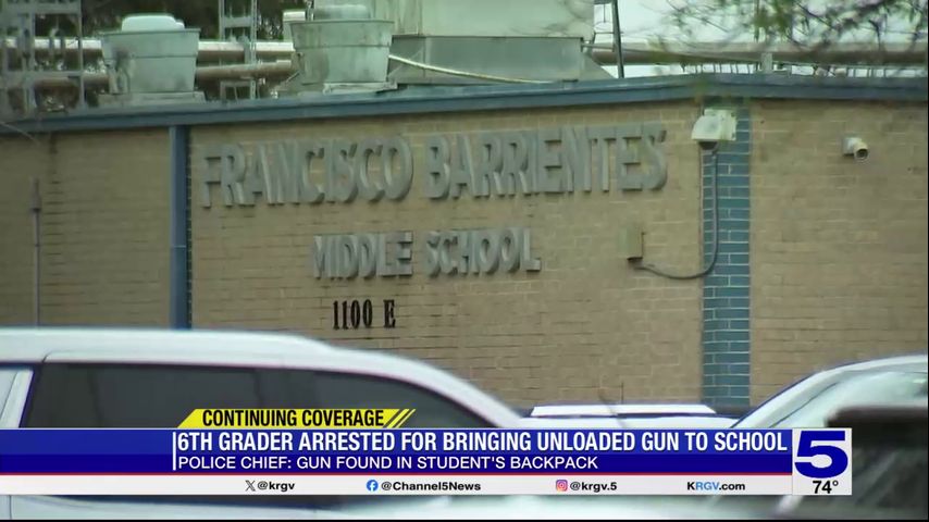 A 6th grade student at Barrientes Middle School in Edinburg was apprehended for bringing an unloaded gun to the school, according to the district's police chief.