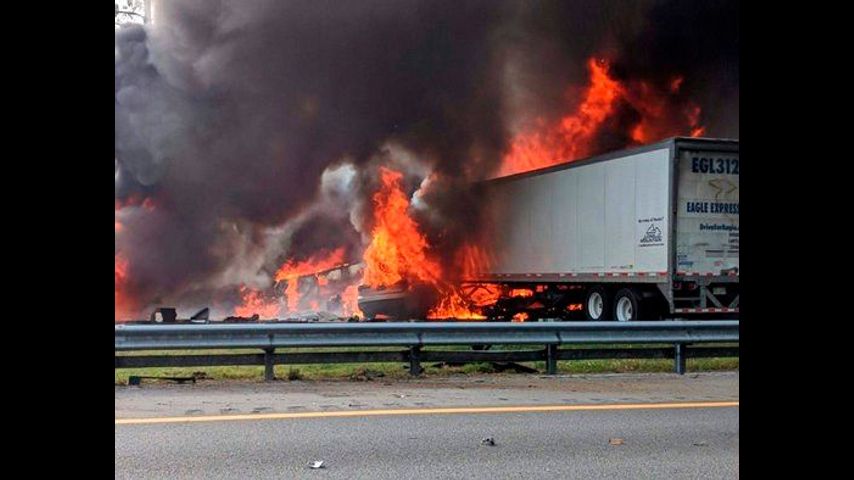 The wreck happened on Interstate 75 about a mile (1.6 kilometers) south of Alachua, near Gainesville. The flames were fed by about 50 gallons (189 liters) of diesel, authorities said.
