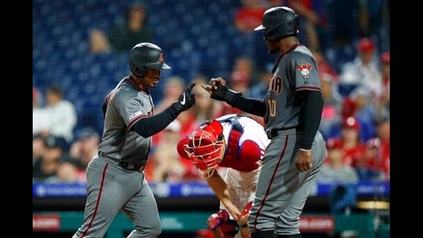 Jarrod Dyson, Ketel Marte and David Peralta hit the dinger, tater and long ball all in a row off Jerad Eickhoff in the first inning to get the record romp rolling . Eduardo Escobar became the first Diamondback to homer from different sides of the plate in consecutive innings. Ildemaro Vargas also homered twice, Alex Avila went deep and the Diamondbacks made the Citizens Bank Park outfield seats the place to be for a souvenir.