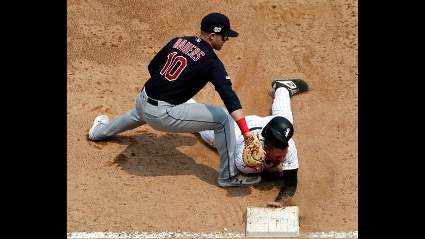 Chicago had two on in the third inning when Indians pitcher Jefry Rodriguez made a pickoff throw that trapped Yolmer Sanchez off second. Sanchez was tagged in a rundown, and Charlie Tilson also was caught when he strayed off first.