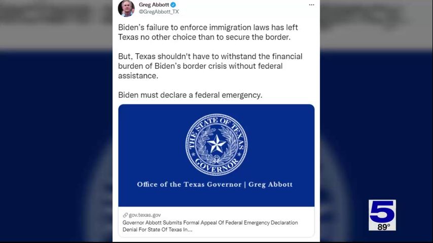 Abbott is calling on Biden to declare a federal emergency and send in money - and more resources - - to secure the border.