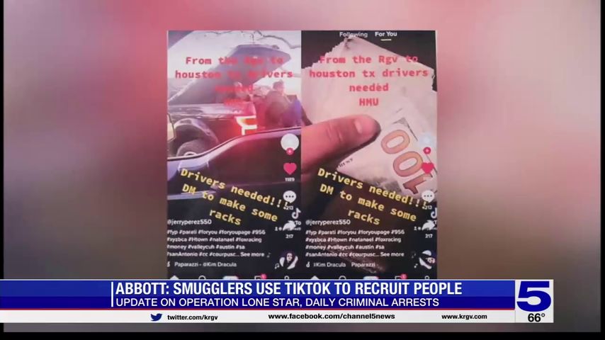 The Texas Department of Public Safety says smugglers are going to new lengths. During the conference, Abbott showed screenshots of videos posted to the social media app TikTok, that appeared to be looking for people willing to transport immigrants across the state.