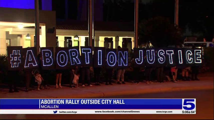 Several abortion-rights groups participated in a visual demonstration outside McAllen City Hall Monday night.