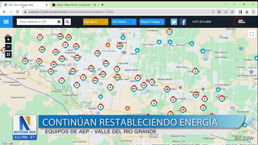 Los clientes de Edinburg, McAllen, Mission y Pharr deberán esperar a tener electricidad hasta mañana al mediodía.