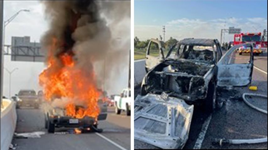 Los agentes de la estación de la Patrulla Fronteriza de Brownsville ayudaron a un automovilista a bajar de su vehículo humeante poco antes de que se incendiara.