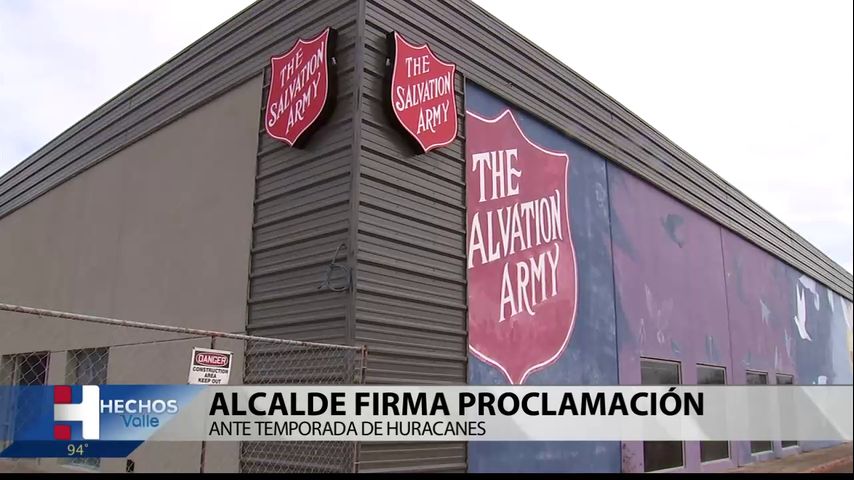 Ante la proximidad de la temporada de huracanes, el dia de hoy el alcalde de McAllen Javier Villalobos, firmó una proclamación para el ejército de salvación con el fin de recordar a la gente los servicios sociales y de albergue disponibles en el ejército de salvación al ante alguna situacion de emergencia.