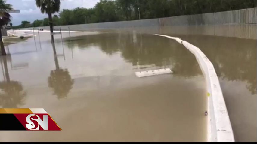 Alrededor de las 4 de la tarde el agua del rio comenzó a invadir la aduana de paso al puente internacional que lleva de Reynosa a la ciudad de Hidalgo, lo que ocasiono que desde el lunes se cerrara la línea Sentri del puente.