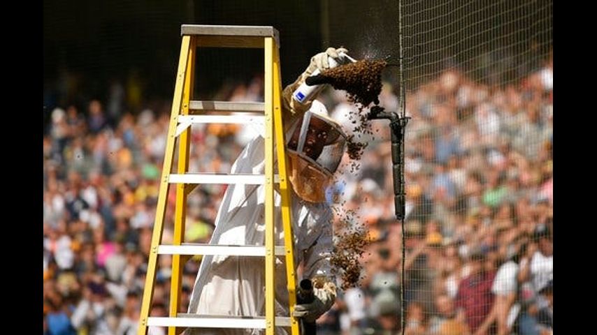 There were still a few bees buzzing around near the Padres' on-deck circle later in the game.
