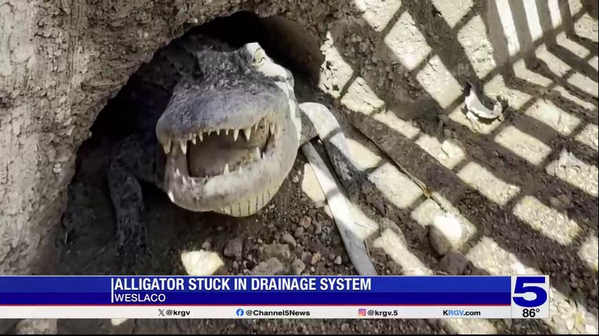 According to TxDOT spokesperson Ray Pedraza, the TxDOT project manager contacted the Hidalgo County Game Warden. A contractor was able to saw-cut the grate inlet, but a game warden said the alligator was over six-feet long, and removing it would be a safety concern.