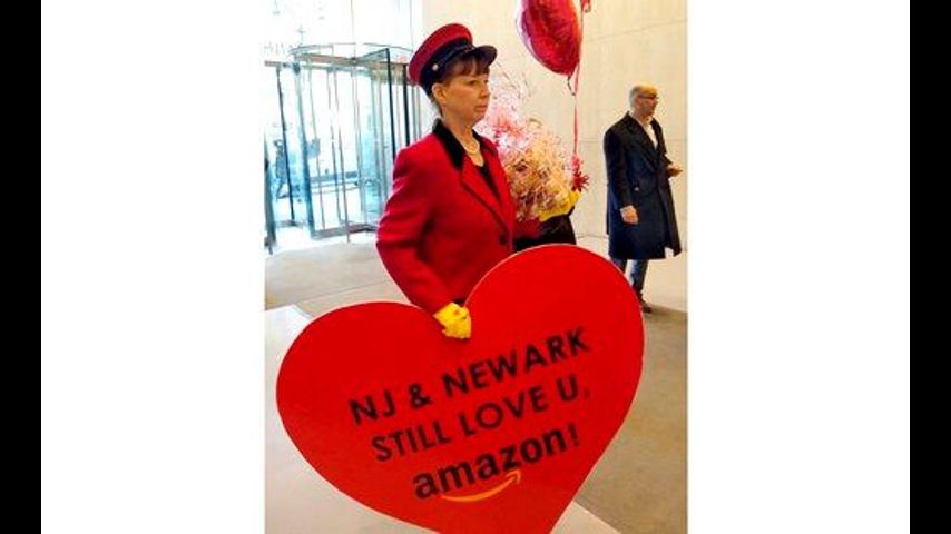 Officials in Newark, New Jersey, one of the 18 finalists that Amazon rejected in November when it announced plans to put its new headquarters in New York and northern Virginia, sent a giant heart that read, "NJ & Newark Still Love U, Amazon!"