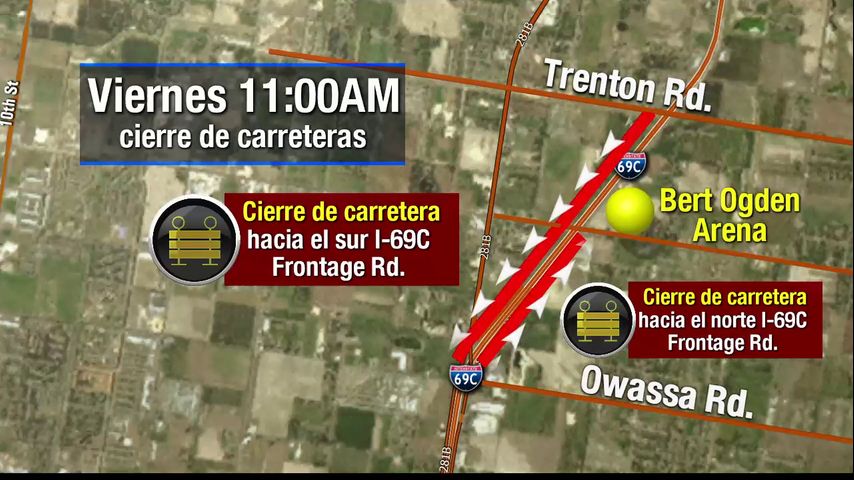 Además, se cerrarán las calles Frontage al norte desde Owassa Road hasta el Bert Ogden Arena.