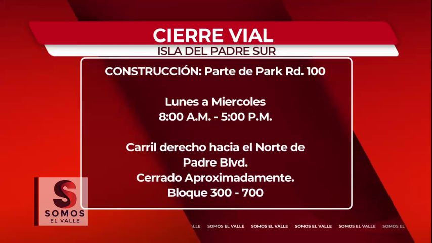 Anuncian cierres viales en Isla del Padre Sur y en Pharr