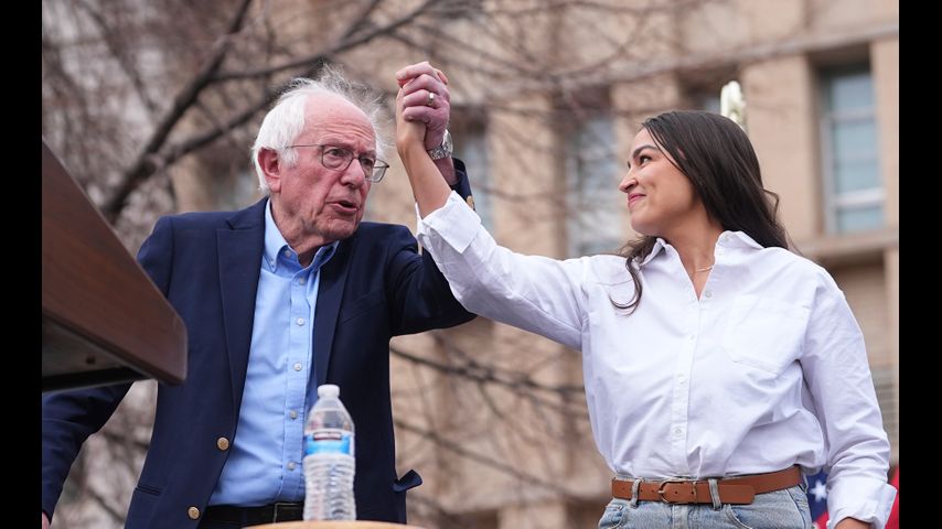 "She has become an inspiration to millions of young people," Sanders said of Alexandria Ocasio-Cortez, recounting her biography from a girl who helped her mother clean houses and later became a bartender before emerging as political insurgent who ousted a powerful New York Democrat in a U.S. House primary.
