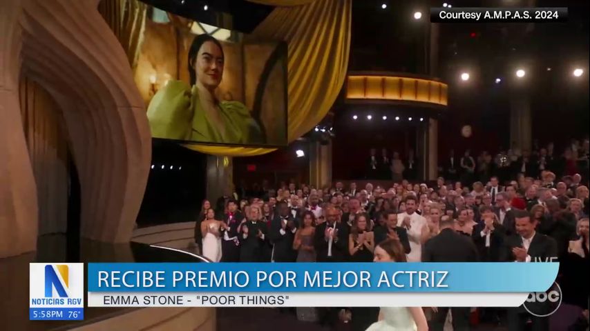 Y una sorprendida Emma Stone recibió su segundo Oscar a mejor actriz, por "Poor Things", la segunda película más galardonada de la noche, reconocida también por mejor diseño de vestuario, mejor maquillaje y peluquería y mejor diseño de producción.