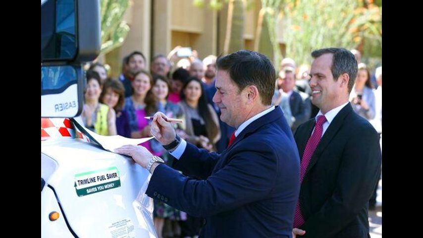 "You don't lose your skills simply because you pack up a U-Haul truck and make the decision to move to Arizona," Ducey, a Republican, said after arriving to a news conference in a U-Haul truck.