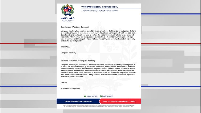 An arrest was made Friday morning after Vanguard Academy received a "credible threat" that led the school to go in a soft lockdown, according to a new release by the charter school.