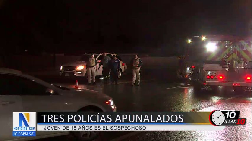 Un joven de 18 años está detenido después de que apuñalara a tres agentes de policía que respondían a una llamada por violencia familiar, según el jefe de policía de San Juan, Leandro Sifuentes.