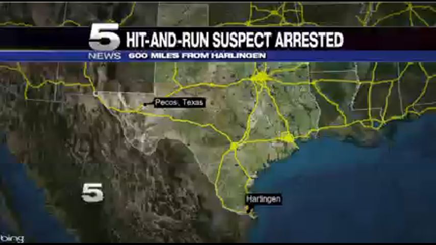 El sospechoso de 31 años de Harlingen fué arrestado en Pecos, a 600 millas de distancia, el Jueves en la tarde.