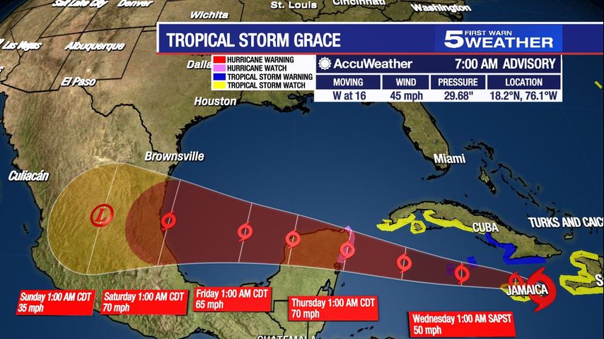 Tropical Storm Grace will likely move into the Gulf of Mexico by Friday.