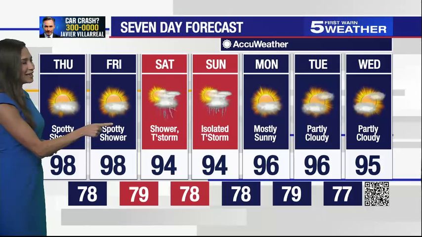 Aug. 18, 2022: Spotty showers with temperatures in upper 90s