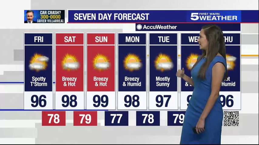 Aug. 6, 2021: Spotty thunderstorms, temperatures in mid-90s