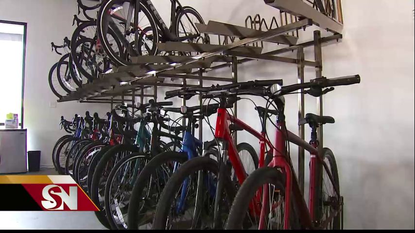 Jesus Mendiola, propietario de Trek Bike Service and Gear en Mission nos dice que se ha agotado su inventario. Menciona que durante las últimas 3 semanas, ha visto un aumento del 30 por ciento en ventas y servicios de bicicletas.