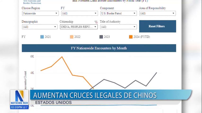 En lo que va del año fiscal 2024 reportan que los cruces de ciudadanos chinos aumentaron hasta el 7 mil por ciento respecto al año fiscal 2021.