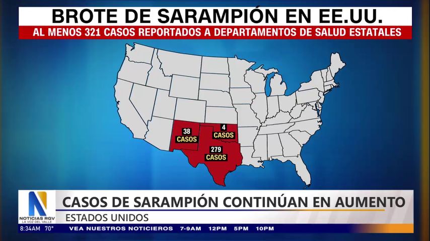 El sarampión es una enfermedad altamente contagiosa, y los casos de sarampión siguen aumentando en Estados Unidos, impulsados por un brote multiestatal que ya alcanzó al menos 321 casos, con un gran número de ellos notificados tanto en Texas, con 279, como en Nuevo México, donde los datos más recientes muestran 38 casos.