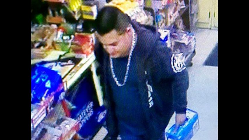 He appeared to be a heavy man with short, dark hair, a silver chain, jeans, dark T-shirt and a dark jacket with white Ecko brand patches on the shoulders.