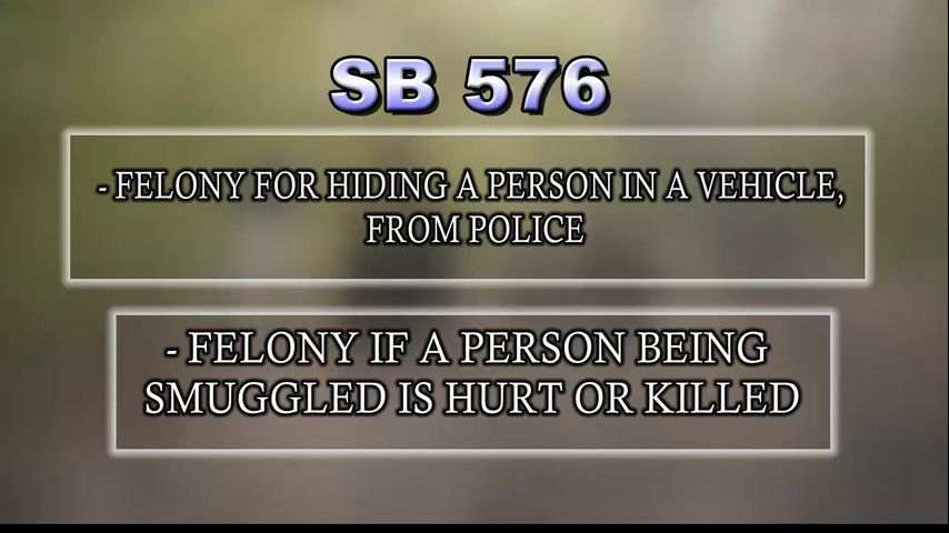 Under Senate Bill 576, it would be a felony if a person knowingly hides another person in their vehicle in order to avoid authorities. It is also a felony if the person being smuggled is seriously hurt or dies while being smuggled. The law took effect on Sept. 1.