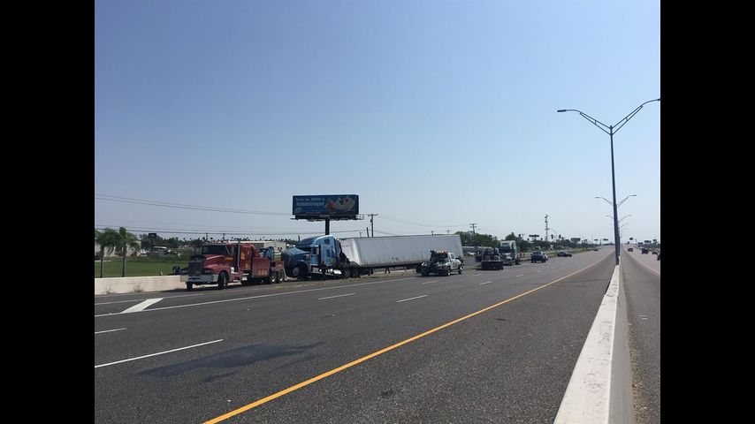 The first accident, involving vehicle and an 18-wheeler, occurred near the Altas Palmas Road exit. Four people were sent to the hospital with unknown injuries.