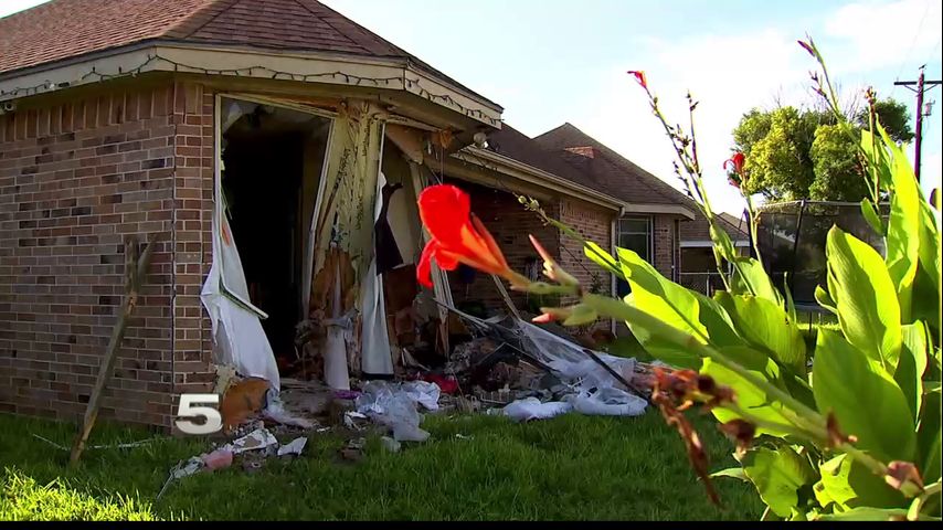 They’re searching for a white GMC Envoy connected to the incident that ended when another vehicle crashed into a home.