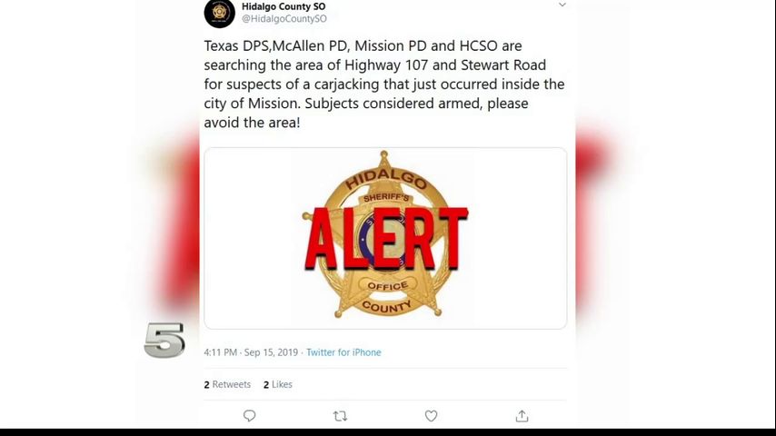 MISSION- The Hidalgo County sheriff office is searching for several suspects wanted for a carjacking that occurred Sunday afternoon.