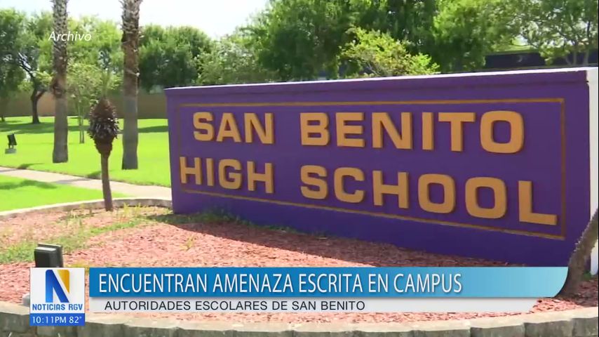 Las autoridades escolares de San Benito dicen que encontraron una amenaza escrita en un campus de esta ciudad, pero no indicaron en cuál específicamente.
