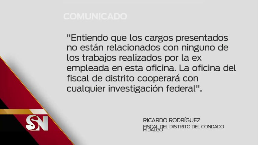 En el comunicado también se menciona: "Entiendo que los cargos presentados no están relacionados con ninguno de los trabajos realizados por la ex-empleada en esta oficina. La oficina del fiscal de distrito cooperará con cualquier investigación federal."