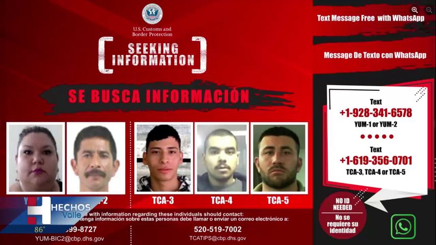 Autoridades revelan cinco sujetos criminales que se buscan en ambos lados de la frontera