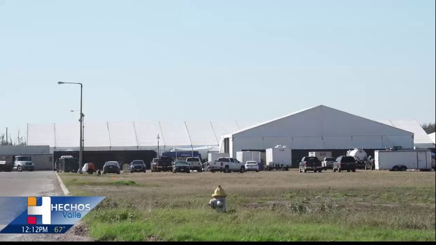 La construcción de la última instalación de tienda de campaña para alojar a los inmigrantes en Donna esta casi terminada.