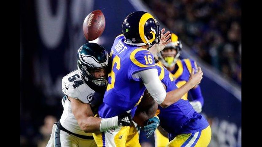 The Eagles scored 17 consecutive points in the third quarter and then survived the Rams' late rally. After Philadelphia's Jake Elliott missed a field goal with 1:08 left, Jared Goff got the Rams to the Philadelphia 18 with 4 seconds to play - but he couldn't connect with Josh Reynolds on a pass to the goal line as time expired.