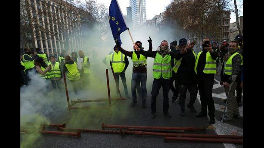 BRUSSELS (AP) - Police and hundreds of yellow jacket protesters upset over high taxes and living costs clashed Friday in Brussels. Dozens were detained as the grassroots movement that started in France two weeks ago gained traction in Belgium.